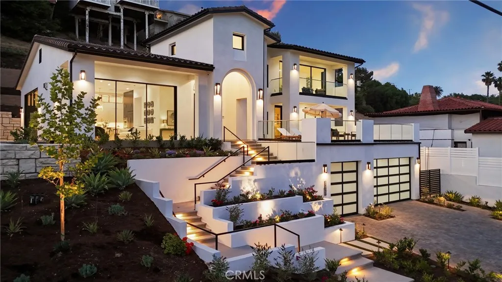 Amazing contemporary Cowan Heights estate on over 1/2 acre lot with booming views via a gated courtyard with mature landscaping.
